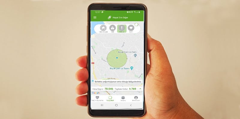 Sağlık Bakanlığı tarafından geliştirilen Hayat Eve Sığar uygulaması, IOS ve Android tabanlı telefon ve tabletlerde kullanılmak üzere yayınlandı. Uygulama ile oturduğunuz semtteki enfekte yoğunluğunu ve riskini görebiliyor, ailenizdeki kişilerin durumunu takip edebiliyorsunuz. Android ve IOS tabanlı cihazlara indirilebilen uygulama, ücretsiz olarak kullanılacak. ‘Hayat Eve Sığar’ uygulaması COVID-19 salgınının kontrol altına alınması ve enfekte olan kişilerin takip edilmesi için geliştirildi.