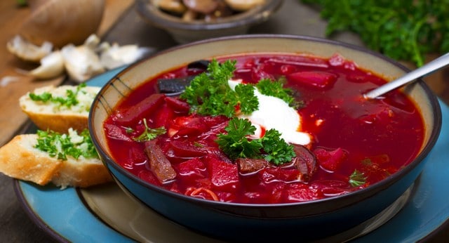 Tarifi: 1 büyük pancarı yıkayıp ince ince doğrayın. ¼ adet kereviz, 1 orta boy patates, 2 orta boy havuç ve 3 diş sarımsağın kabuklarını soyun ve küçük küçük doğradıktan sonra tüm malzemeleri tencereye koyun. Sebzelerin üzerine dört parmak geçecek kadar su ekleyin ve orta ateşte sebzeler yumuşayana kadar pişirin. Pişen sebzeleri blenderdan geçirdikten sonra üzerine daha önceden haşlanmış 1 su bardağı et suyu ekleyin. İstenen kıvam yakalanana kadar üzerine sıcak su ilave edin. Tuz ve karabiber ekleyerek servis edin.
