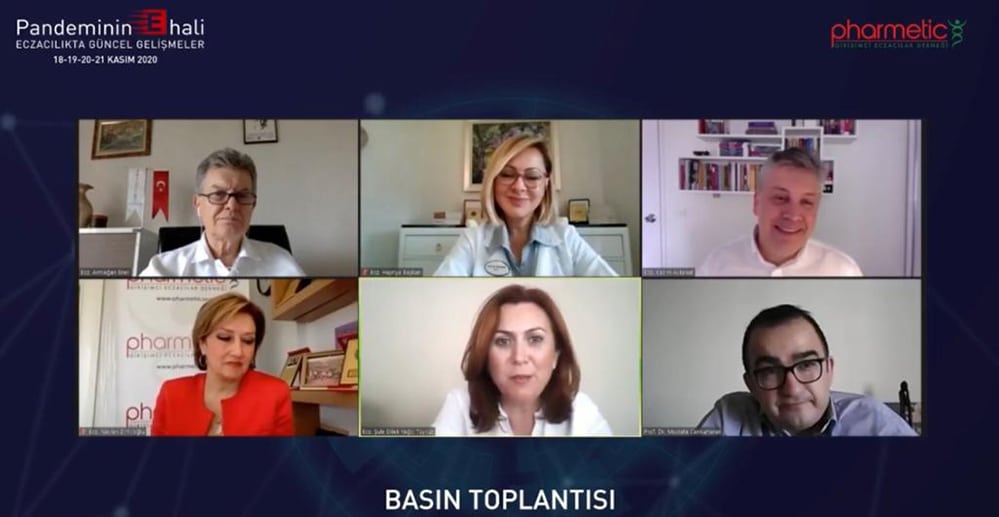 “Pandeminin E Hali, Eczacılıkta Güncel Gelişmeler Sempozyumu” kapsamında Pharmetic Girişimci Eczacılar Derneği Başkanı Armağan Ener, Yardımcısı Kazım Aykanat, Hacettepe Üniversitesi Tıp Fakültesi Geriatri Bilim Dalı Başkanı Prof. Dr. Mustafa Cankurtaran, Dernek Kurumsal Koordinatörü Eczacı Neylan Zırhlıoğlu, Dernek Yönetim Kurulu Üyesi Eczacı Hayriye Başkan ve Genel Sekreteri Şule Dilek Yağcı Tüysüz online basın toplantısı düzenledi.