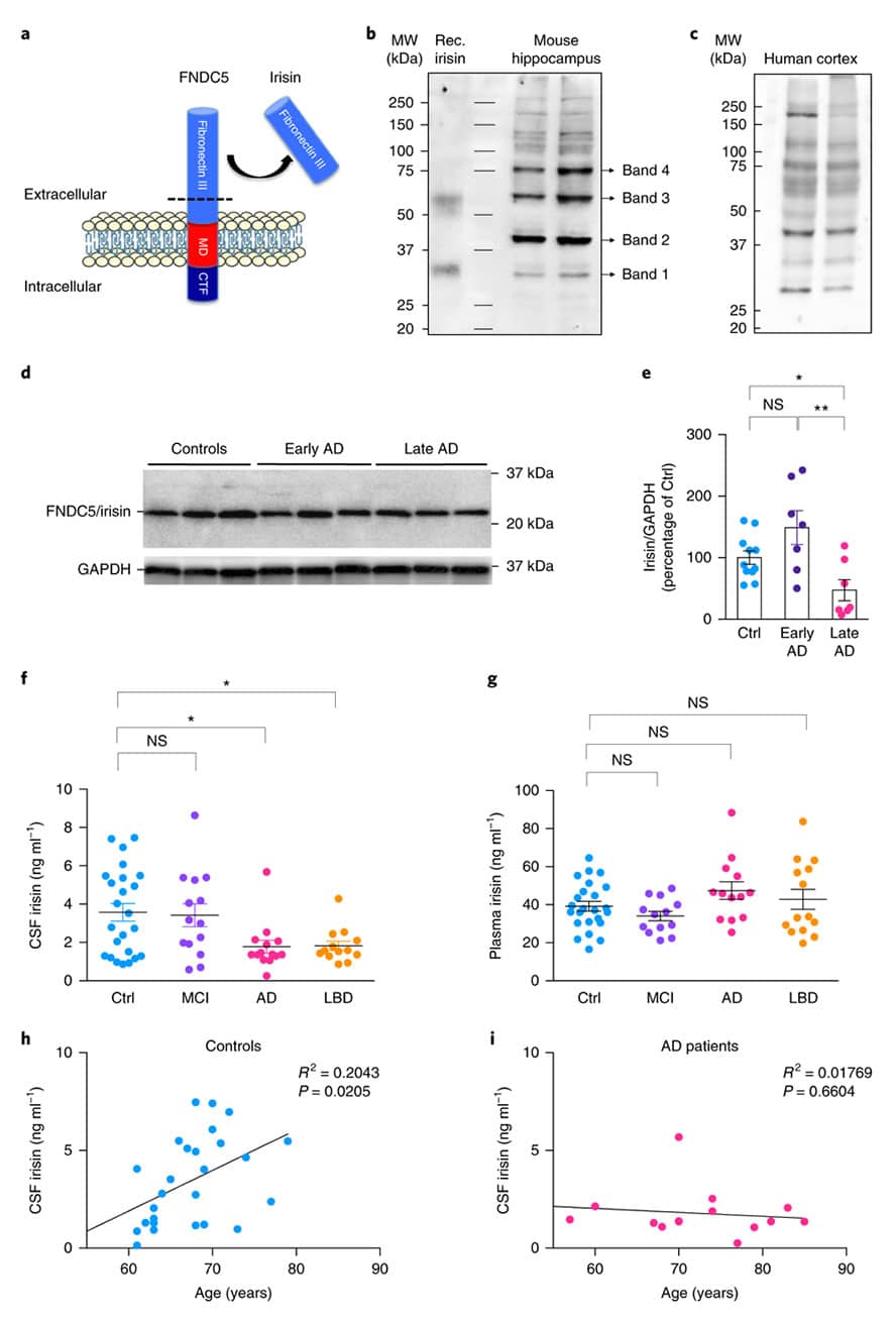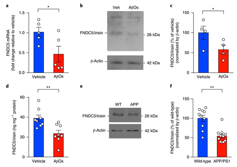 Yukarıda kısaca özeti verilen deneyde görüldüğü gibi alzheimer yapılmış farelerin beynine dışarıdan irisin takviyesi yapıldığında farelerin sağlığına kavuştuğu görüldü. Benzer bir etkinin düzenli bir spor programıyla da başarılabileceğini varsayan ekip, bu sefer de genetik olarak alzheimer yapılan fareleri her gün düzenli olarak yüzme havuzunda eksersizi yaptırdılar. Günlük yüzme ünitelerini tamamlayan fareler, kontrol grubundaki farelere göre daha az hafıza kaybı yaşadığı ve yapılan patolojik araştırmalarda ise farelerin beyindeki FNDC5/irisin konsantrasyonunu arttırdığı tespit edildi. Ama daha da önemlisi farelerin beyninde artan İrisin miktarı ile birlikte Alzheimer hastalığının tipik bir belirtisi olan beta-amiloid plak üretiminin de azaldığı tespit edildi.