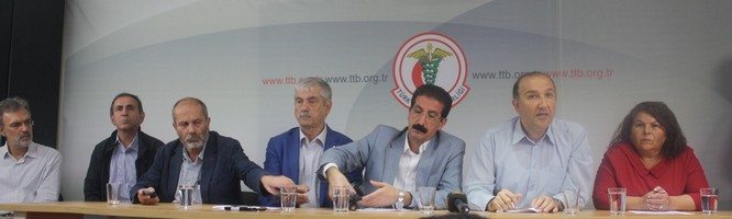 Basın açıklamasını okuyan TTB Merkez Konseyi Başkanı Dr. Bayazıt İlhan, faşist katliamı protesto etmek için 3 gün yas 2 gün grev ilan ettiklerini bildirdi. ÇGD Başkanı Ahmet Abakay da alana ambulanslardan önce TOMA’ların girdiğini belirterek, yaralıların üzerine gaz sıkıldığını belirtti.