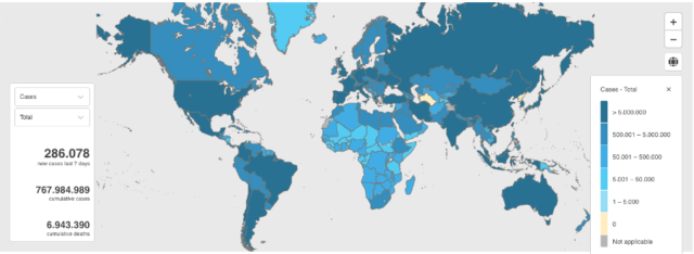 “Aralık 2019 tarihinden itibaren tüm dünyada çok ciddi bir sağlık sorunu oluşturan Covid-19 pandemisinde bugüne dek yaklaşık 768 milyon doğrulanmış vaka bildirilmiştir. Dünya Sağlık Örgütü (DSÖ) verilerine göre 14 Haziran 2023 itibariyle dünyada yaklaşık 7 milyon (6.943.390) ölüme neden olmuştur (Şekil 1). Ülkemizde de Sağlık Bakanlığı verilerine göre COVID-19 nedenli 100 bin üzerinde ölüm bildirilmiştir.”