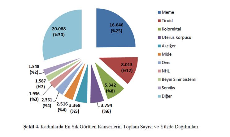 Dünya Sağlık Örgütü’nün önerisi ile birlikte ülkemizde de ilk sıralarda yer alan meme, rahim ağzı (serviks), bağırsak (kolorektal) kanserleri için toplum tabanlı tarama programları yürütülmektedir. Tüm kadın kanserleri vakaları içerisinde, taranan kadın kanseri türlerinin payı %35’tir. Erkek kanserleri içinde ise bağırsak kanseri %10 civarında üçüncü sırada yer almaktadır.