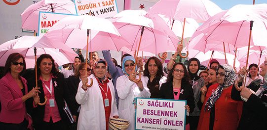 balona meme kanserine dikkat çekmek için afişler asıldı. Etkinlikle ayrıca 5 adet mobil mamografi tarama aracının açılışı da yapıldı.