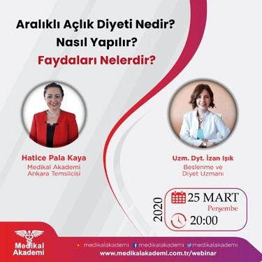 Medikal Akademi “Beslenme ve Sağlıklı Yaşam” söyleşimizin bu bölümünde ”Aralıklı Açlık Diyeti Nedir? Nasıl Yapılır? Faydaları Nelerdir?” konusunda Beslenme ve Diyet Uzmanı İzan Işık, Medikal Akademi Ankara Temsilcisi Hatice Pala Kaya’nın sorularını yanıtladı. Youtube kanalımıza abone olarak sonraki yayınlardan haberdar olabilirsiniz.