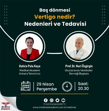 Medikal Akademi Güncel Sağlık söyleşimizin bu haftaki bölümünde ”Baş Dönmesi (Vertigo) Nedir? Nedenleri ve Tedavisi ” konusunda Uluslararası Vestibüler Derneği Başkanı Prof. Dr. Nuri Özgirgin, Medikal Akademi Ankara Temsilcisi Hatice Pala Kaya‘nın sorularını yanıtladı. Youtube kanalımıza abone olarak sonraki etkinliklerden haberdar olabilirsiniz.