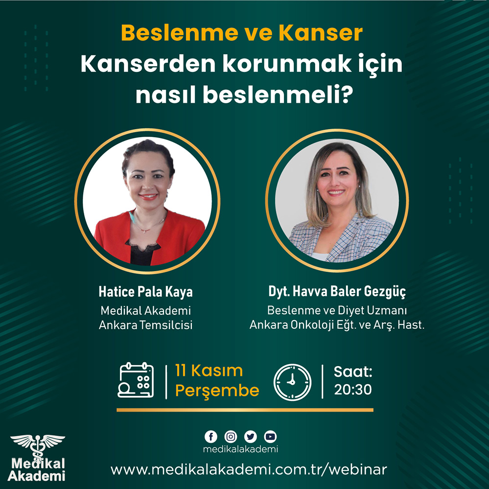 Güncel Sağlık söyleşimizin bu haftaki oturumunda ‘Kanser ve Beslenme: Kanserden korunmak için nasıl beslenmeli?’ konusunda Ankara Onkoloji Eğitim ve Araştırma Hastanesi Beslenme ve Diyet Uzmanı Havva Baler Gezgüç, Medikal Akademi Ankara Temsilcisi Hatice Pala Kaya‘nın sorularını yanıtladı. Youtube kanalımıza abone olarak sonraki webinar ve canlı yayınlarımızdan haberdar olabilirsiniz.