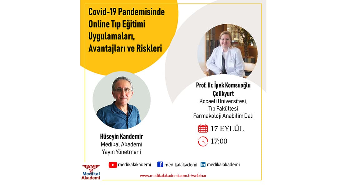 Koronavirüs pandemisi tıp eğitimini nasıl etkiledi? Online tıp eğitiminde ne tür teknolojiler kullanılıyor? Pandemiden sonra online tıp eğitimi sürer mi? Kocaeli Üniversitesi, Tıp Fakültesi Farmakoloji Anabilim Dalı öğretim üyesi Prof. Dr. İpek Komsuoğlu Çelikyurt, Medikal Akademi Genel Yayın Yönetmeni Hüseyin Kandemir’in sorularını yanıtladı.