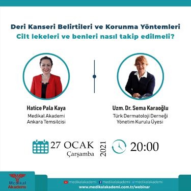 Güncel Sağlık Söyleşilerimizin yeni bölümünde “Deri Kanseri Belirtileri ve Korunma Yöntemleri: Cilt lekeleri ve benleri nasıl takip edilmeli?” konusunda Türk Dermatoloji Derneği Yönetim Kurulu Üyesi Uzm. Dr. Sema Karaoğlu, Medikal Akademi Ankara Temsilcisi Hatice Pala Kaya‘nın sorularını yanıtladı. Youtube kanalımıza abone olarak sonraki yayınlarımızdan haberdar olabilirsiniz.