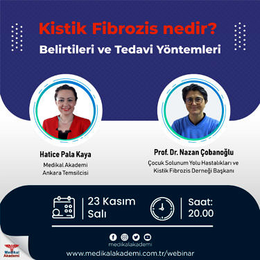 Medikal Akademi Güncel Sağlık söyleşimizin bu haftaki oturumunda ‘Kistik Fibrozis nedir? Belirtileri, Tanı ve Tedavi Yöntemleri’ konusunda Çocuk Solunum Yolu Hastalıkları ve Kistik Fibrozis Derneği Başkanı Prof. Dr. Nazan Çobanoğlu, ile konuştuk. Oturumun moderatörlüğünü Medikal Akademi Ankara Temsilcisi Hatice Pala Kaya yaptı. Youtube kanalımıza abone olarak sonraki etkinlik ve yayınlarımızdan haberdar olabilirsiniz.