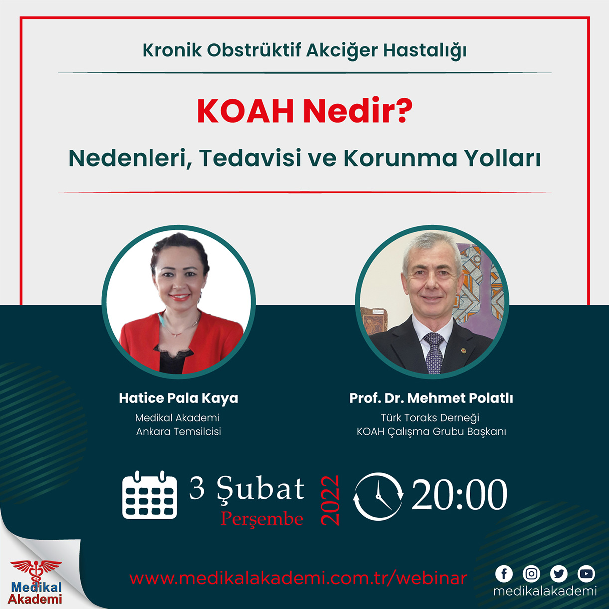 Güncel Sağlık söyleşimizin bu haftaki oturumunda ‘Kronik Obstrüktif Akciğer Hastalığı (KOAH) nedir? Nedenleri ve Tedavisi’ konusunu Türk Toraks Derneği KOAH Çalışma Grubu Başkanı Prof. Dr. Mehmet Polatlıile konuştuk. Oturumun moderatörlüğünü Medikal Akademi Ankara Temsilcisi Hatice Pala Kaya yaptı. Youtube kanalımıza abone olarak sonraki webinar ve canlı yayınlarımızdan haberdar olabilirsiniz.