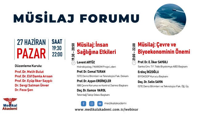 Medikal Akademi Müsilaj Forumu‘nun ikinci oturumunda Marmara Denizi’nde başlayan ve önemli bir çevre sorununa dönüşen ‘Müsilaj: Çevre ve Biyoekonominin Önemi’ konusunu bu alanın uzmanları ile konuştuk. ‘Çevresel atıklar ve oluşturabileceği riskler’ konusunu Sanko Üniversitesi Tıbbi Biyokimya Anabilim Dalı Başkanı Prof. Dr. Eyüp İlker Saygılı, ‘Biyoekonomi ve Potansiyel Önemi‘ konusunu BİYOKOOP Kurucu Başkanı Erdinç İKİZOĞLU, ‘Algler ve Denizel Biyoekonomi‘ konusunu İSTE Deniz Bilimleri ve Teknolojisi Fakültesi Öğretim Üyesi Doç. Dr. Selin SAYIN, tüm boyutları ile değerlendirdiler. Oturumun moderatörlüğü Sağlıkta İşbirliği Platformu Kurucusu Prof. Dr. Melih Bulut, Gebze Teknik Üniversitesi Öğretim Üyesi Prof. Dr. Damla Arısan, Genomedis Biyoteknoloji Kurucusu / Akademisyen Dr. Sevgi Salman Ünver ve Sağlık Yönetimi Bilim Uzmanı Dr. Feza Şen tarafından yapıldı.