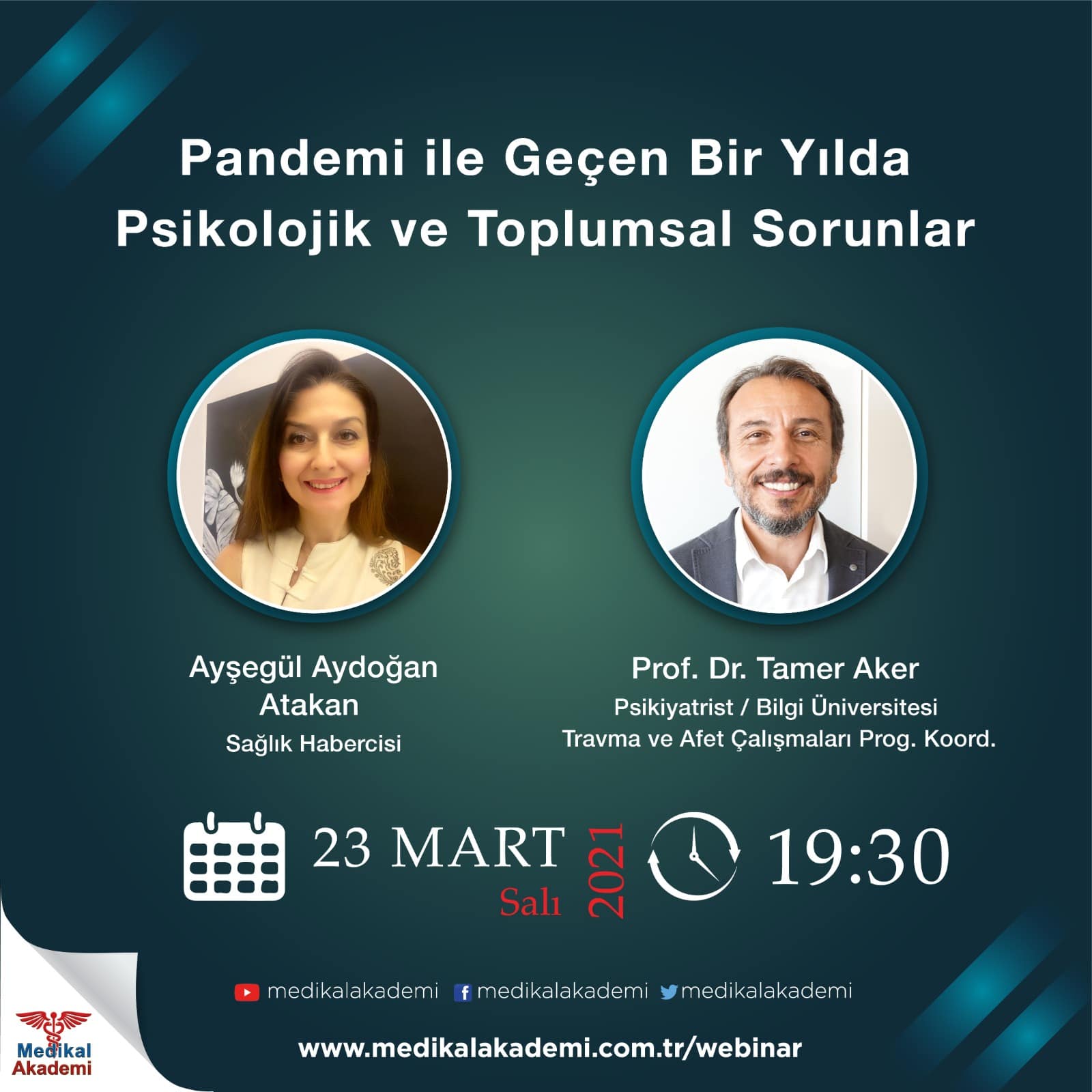 Medikal Akademi Güncel Sağlık Söyleşimizin bu haftaki buluşmasında ‘Pandemi ile Geçen Bir Yılda Psikolojik ve Toplumsal Sorunlar’ konusunda Bilgi Üniversitesi Travma ve Afet Çalışmaları Programı Koordinatörü Psikiyatrist Prof. Dr. Tamer Aker, Sağlık Habercisi Ayşegül Aydoğan Atakan‘ın sorularını yanıtladı. Youtube kanalımıza abone olarak sonraki yayınlarımızdan haberdar olabilirsiniz.