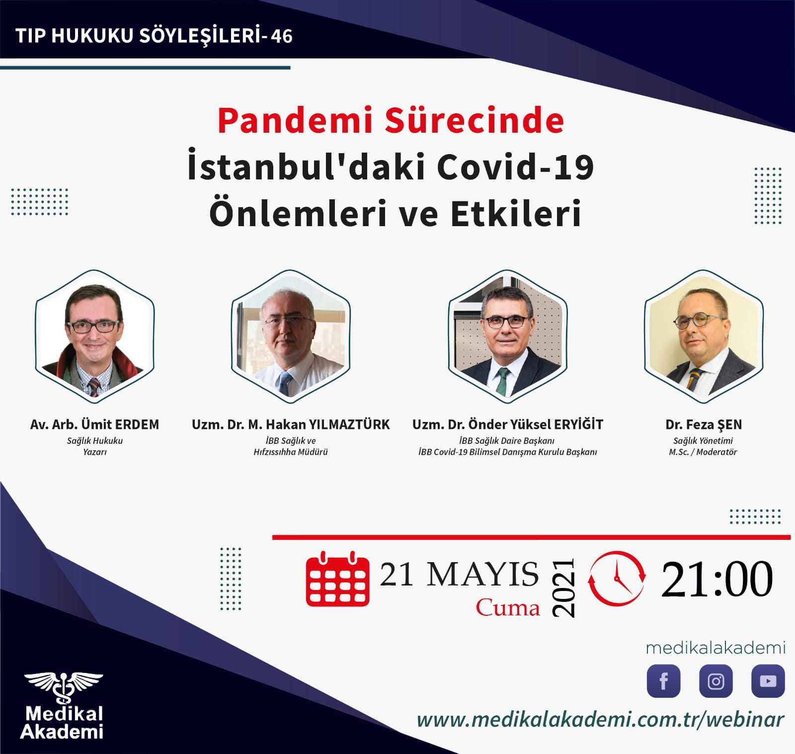 Medikal Akademi Tıp Hukuku Söyleşimizin 46’ıncı oturumunda “Pandemi Sürecinde İstanbul’daki Covid-19 Önlemleri ve Etkileri” konusunu, İstanbul Büyükşehir Belediyesi (İBB) Sağlık Daire Başkanı ve İBB Covid-19 Bilimsel Danışma Kurulu Başkanı Uzm. Dr. Önder Yüksel ERYİĞİT, İstanbul Büyükşehir Belediyesi Sağlık ve Hıfzıssıhha Müdürü Uzm. Dr. Mustafa Hakan Yılmaztürk ve Sağlık Hukuku Yazarı Av. Arb. Ümit Erdem ile Dr. Feza Şen moderatörlüğünde konuştuk. Youtube kanalımıza abone olarak sonraki etkinliklerden haberdar olabilirsiniz.