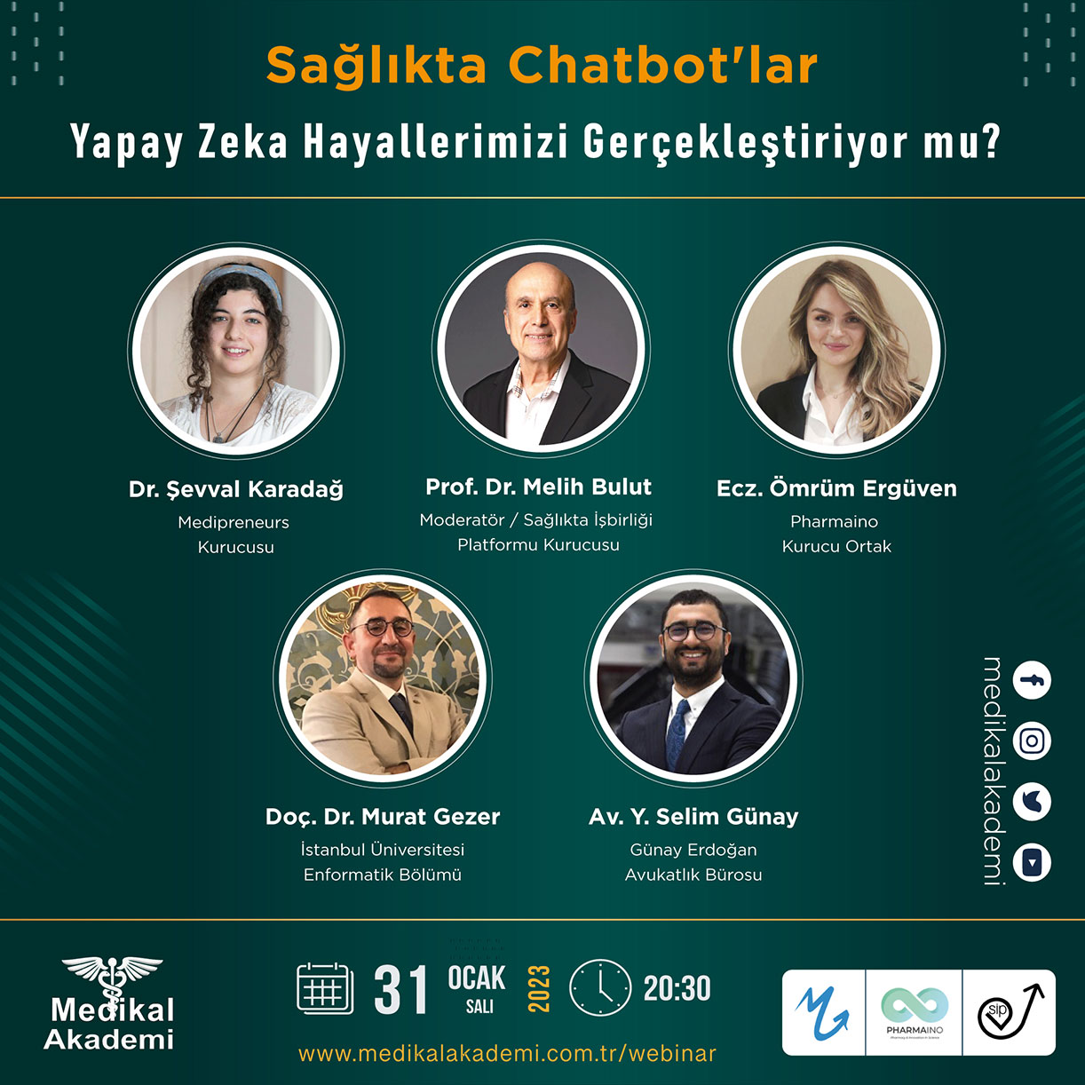 Medikal Akademi ‘Sağlık Bilişimi ve Teknoloji’ yayın serisinin bu yılki oturumunda ‘Sağlıkta Chatbot’lar: Yapay Zeka Hayallerimizi Gerçekleştiriyor mu?’ konusunu Sağlıkta İşbirliği Platformu Kurucusu Prof. Dr. Melih Bulut, moderatörlüğünde konuklarımız, İstanbul Üniversitesi Enformatik Bölümü öğretim üyesi Doç. Dr. Murat Gezer, Medipreneurs Kurucusu Dr. Şevval Karadağ, Pharmaino Kurucu Ortağı Ecz. Ömrüm Ergüven ve Avukat Yavuz Selim Günay ile konuştuk. Youtube kanalımıza abone olarak sonraki webinar ve canlı yayınlarımızdan haberdar olabilirsiniz.