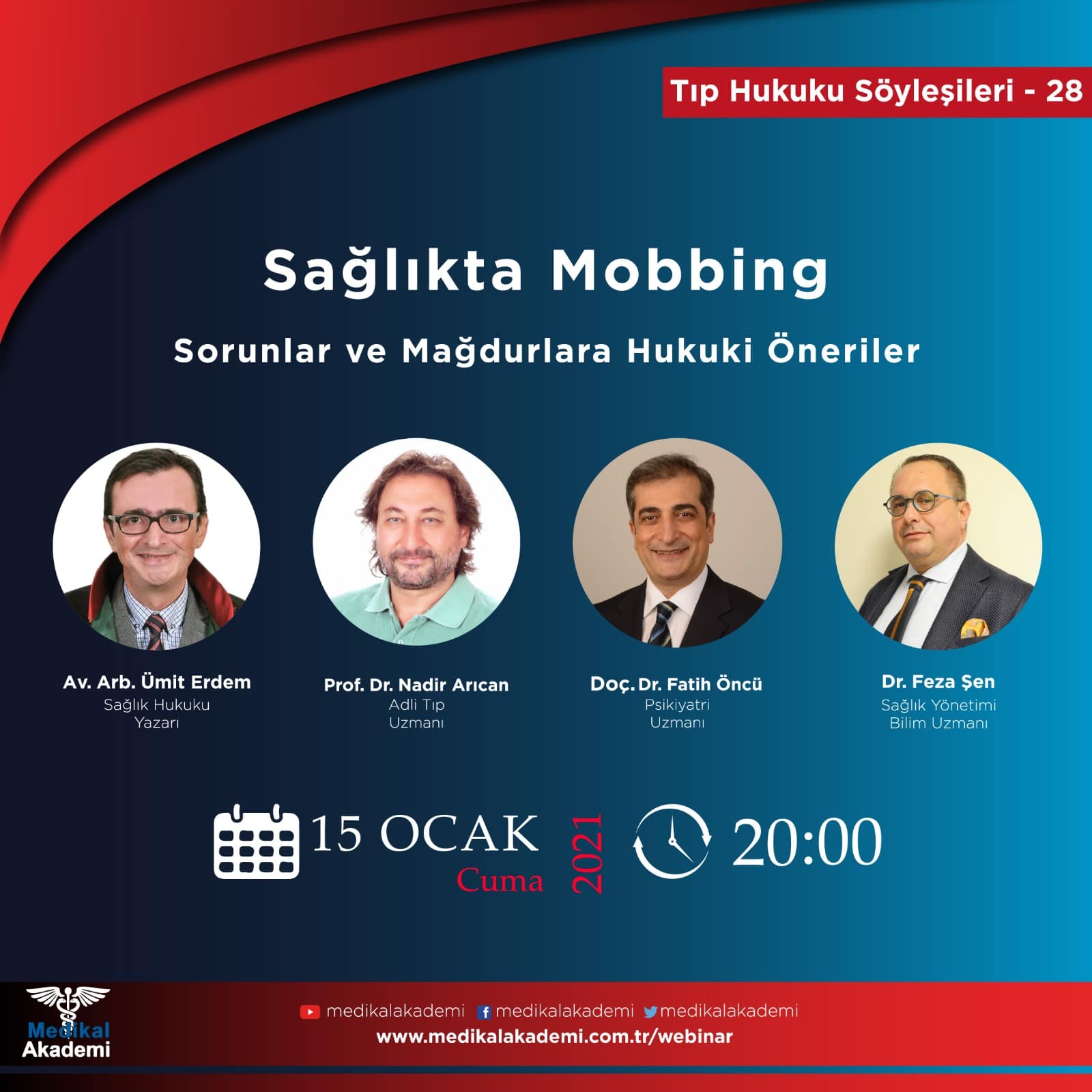 Medikal Akademi Tıp Hukuku Söyleşileri’mizin 28’incisinde “SAĞLIK’TA MOBBİNG – Sorunlar ve Mağdurlara Hukuki Öneriler” konusunu; İstanbul Üniversitesi İstanbul Tıp Fakültesi Adli Tıp Anabilim Dalı Öğretim Üyesi, Adli Tıp Uzmanı Prof. Dr. Nadir Arıcan, Bakırköy Mazhar Osman Ruh Sağlığı ve Sinir Hastalıkları Eğitim ve Araştırma Hastanesi Öğretim Üyesi, Psikiyatri Uzmanı Doç. Dr. Fatih Öncü, Sağlık Yönetimi Bilim Uzmanı Dr. Feza Şen ve Sağlık Hukuku Yazarı Av. Arb. Ümit Erdem ile konuştuk. Youtube kanalımıza abone olarak sonraki etkinliklerden haberdar olabilirsiniz.