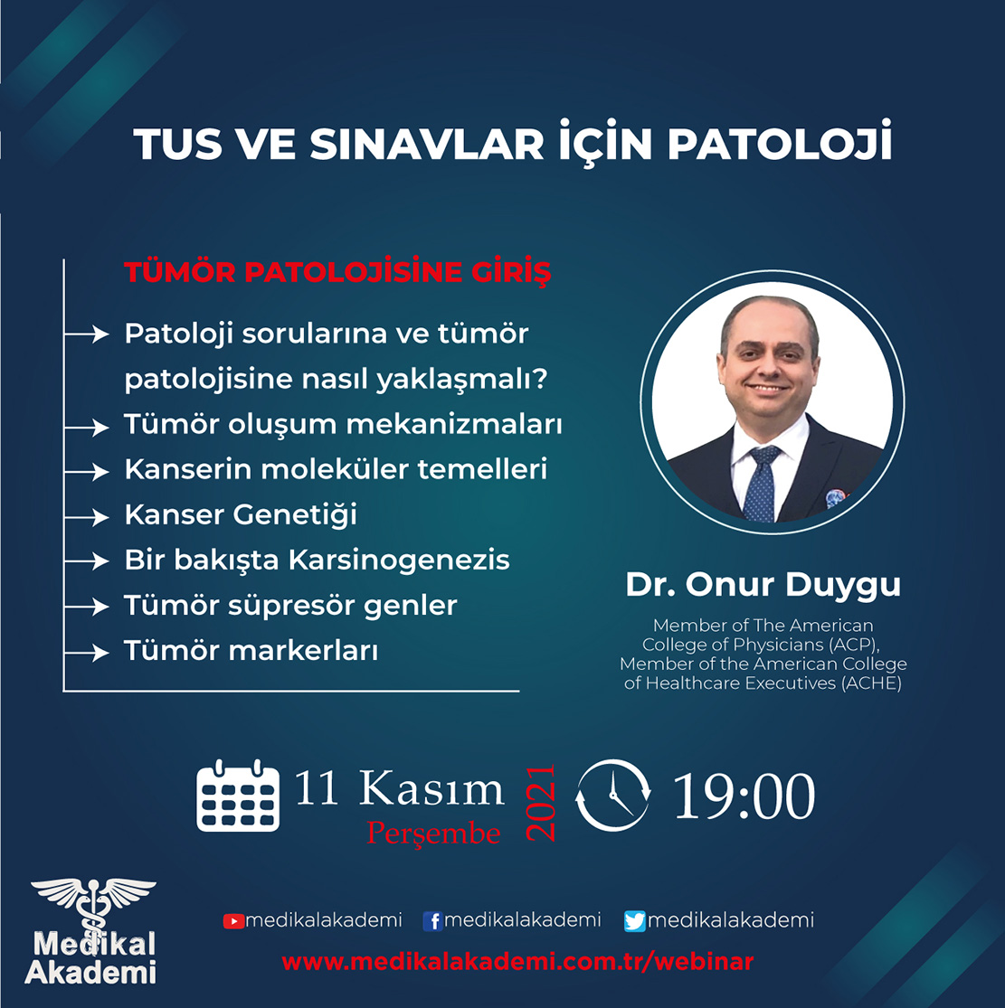 “TUS ve Sınavlar için Patoloji: Tümör Patolojisine Giriş” konusunu tüm detayları ile Dr. Onur Duygu‘dan dinledik. Youtube kanalımıza abone olarak sonraki webinar ve canlı yayınlarımızdan haberdar olabilirsiniz.