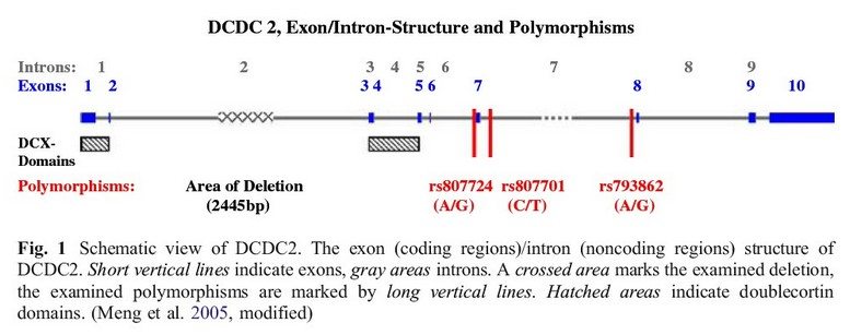 2006 yılında Alman ve İsveçli araştırma grubu tarafından yapılan bir araştırmada 6. kromozomda DCDC2 geni üzerinde birde fazla noktasal mutasyon olduğu tespit edildi(1).